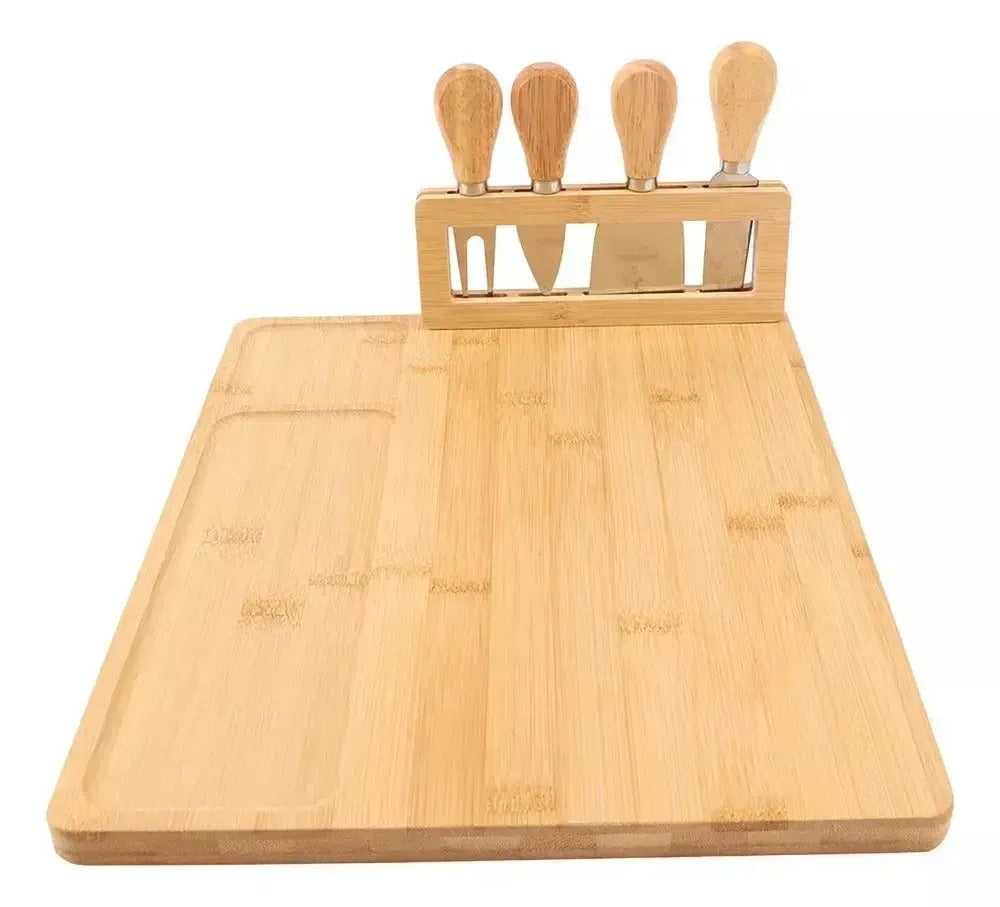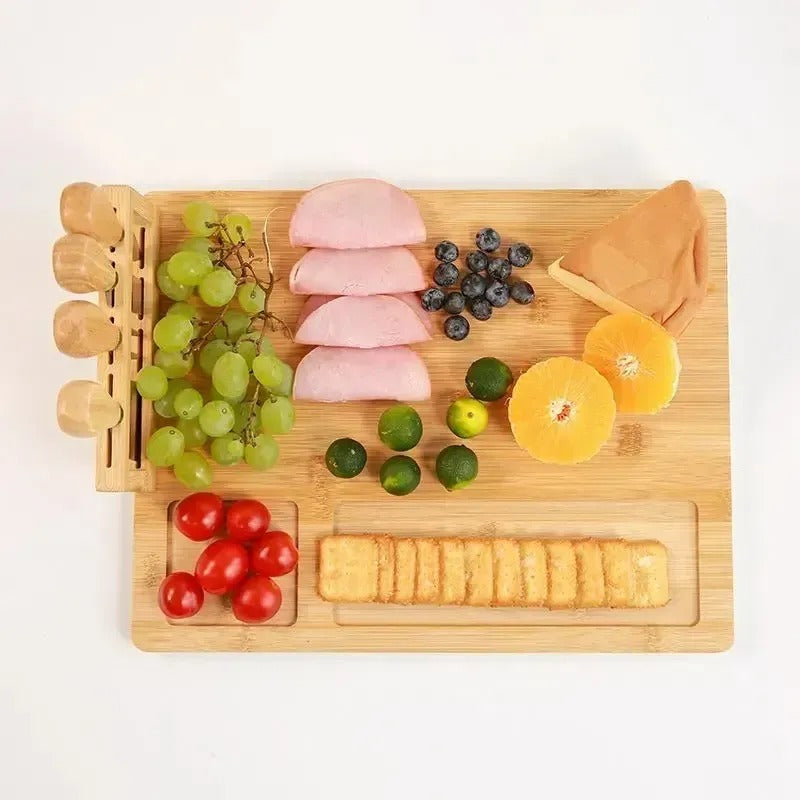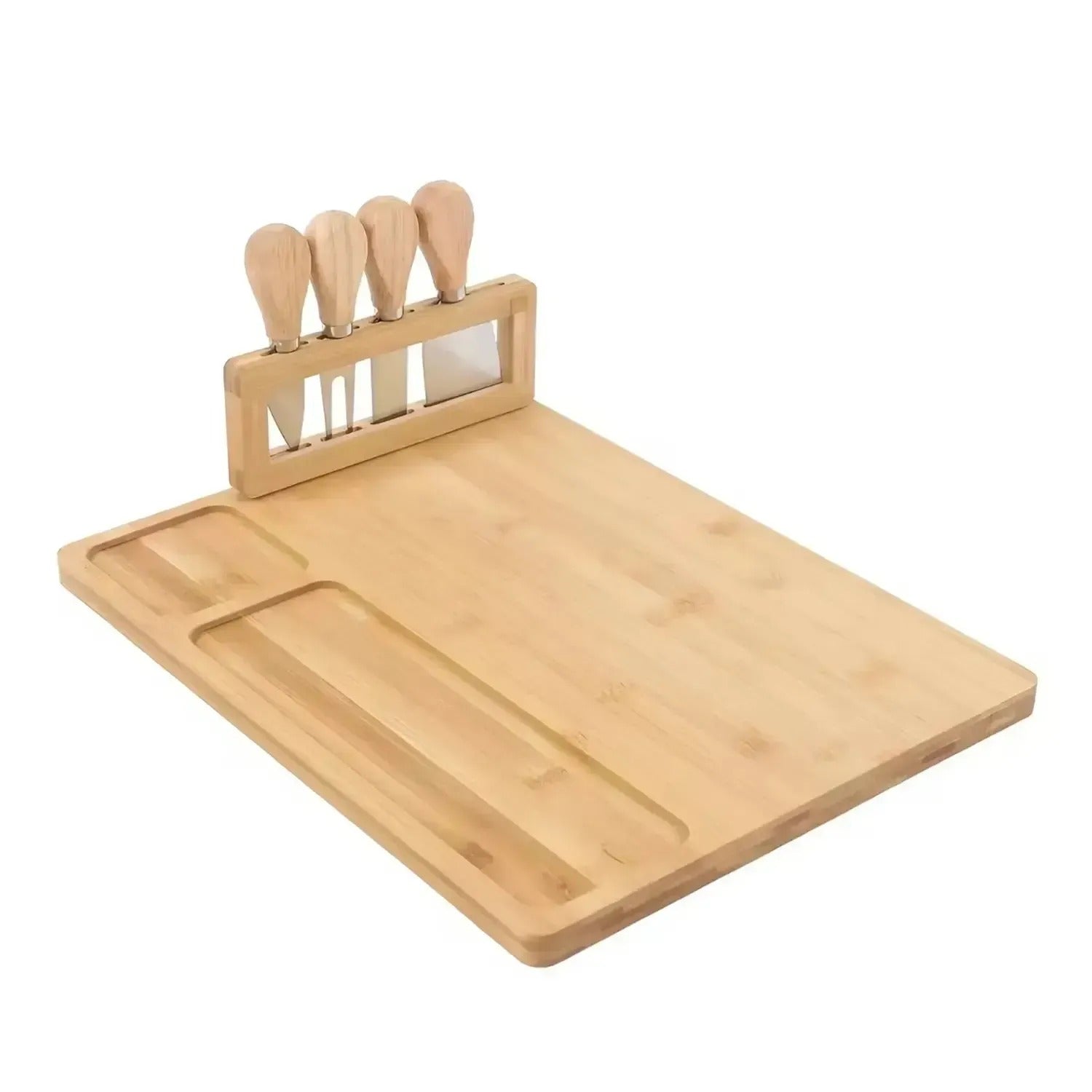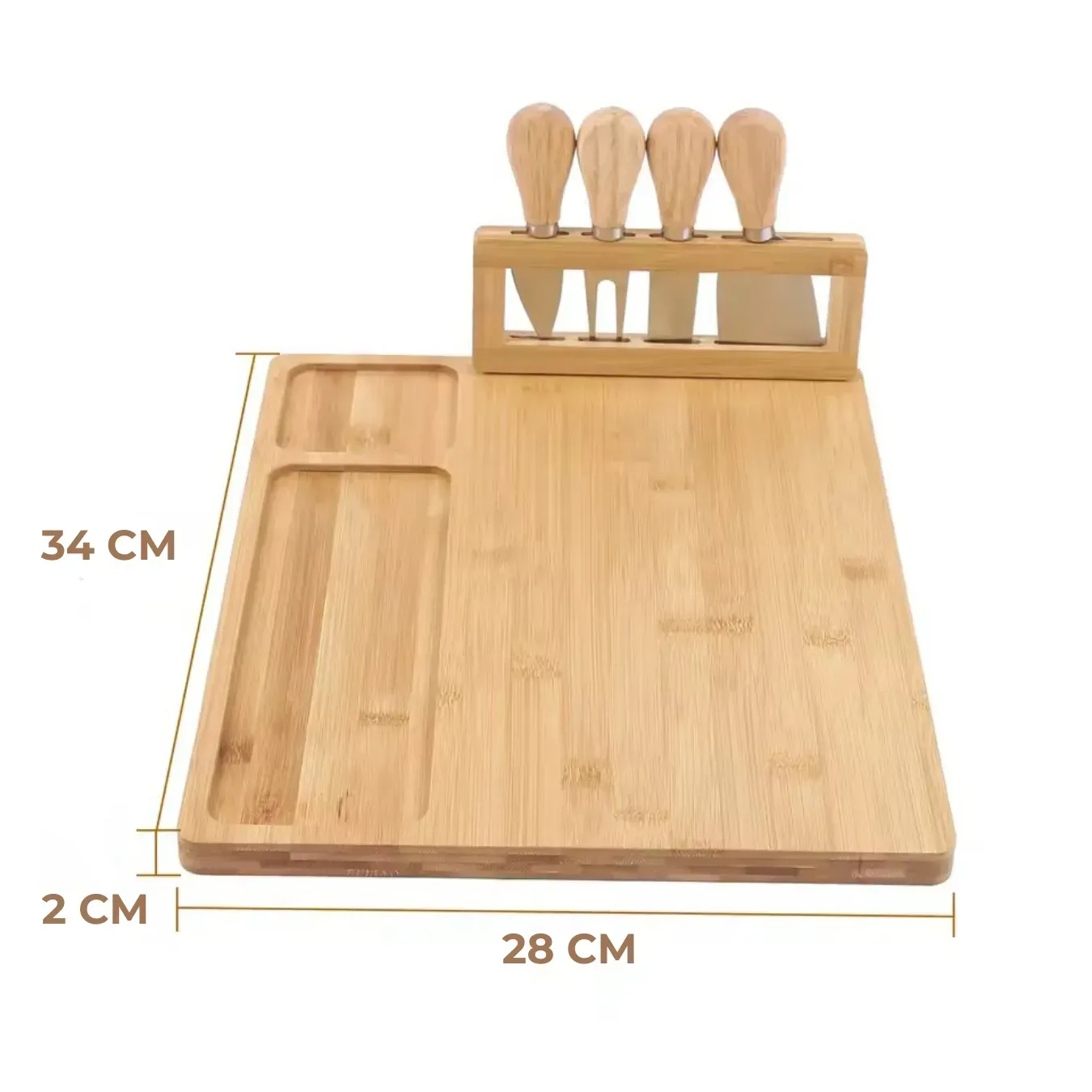 Bambusová deska na servírování sýrů a uzenin se sadou nožů – elegance na vašem stole