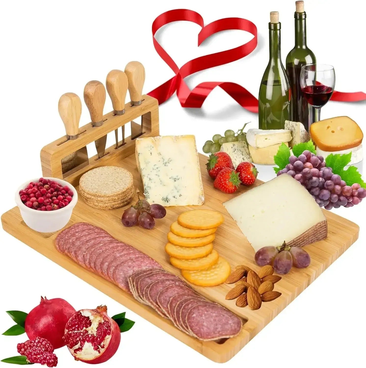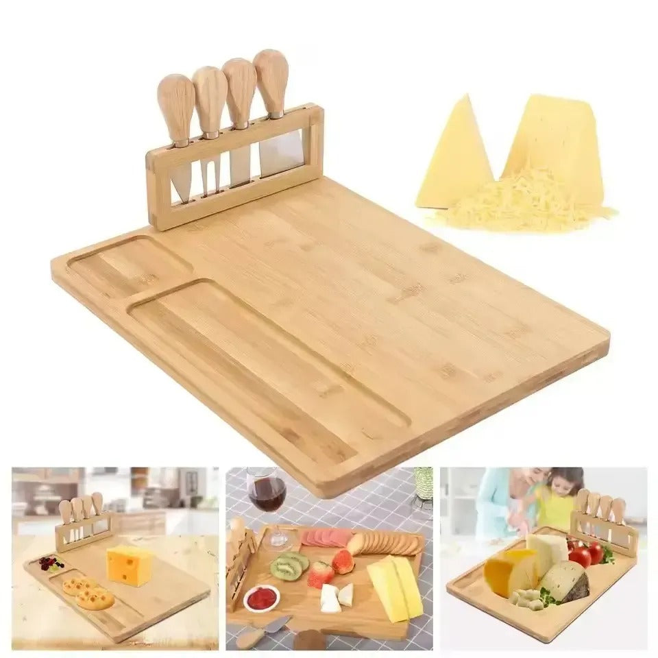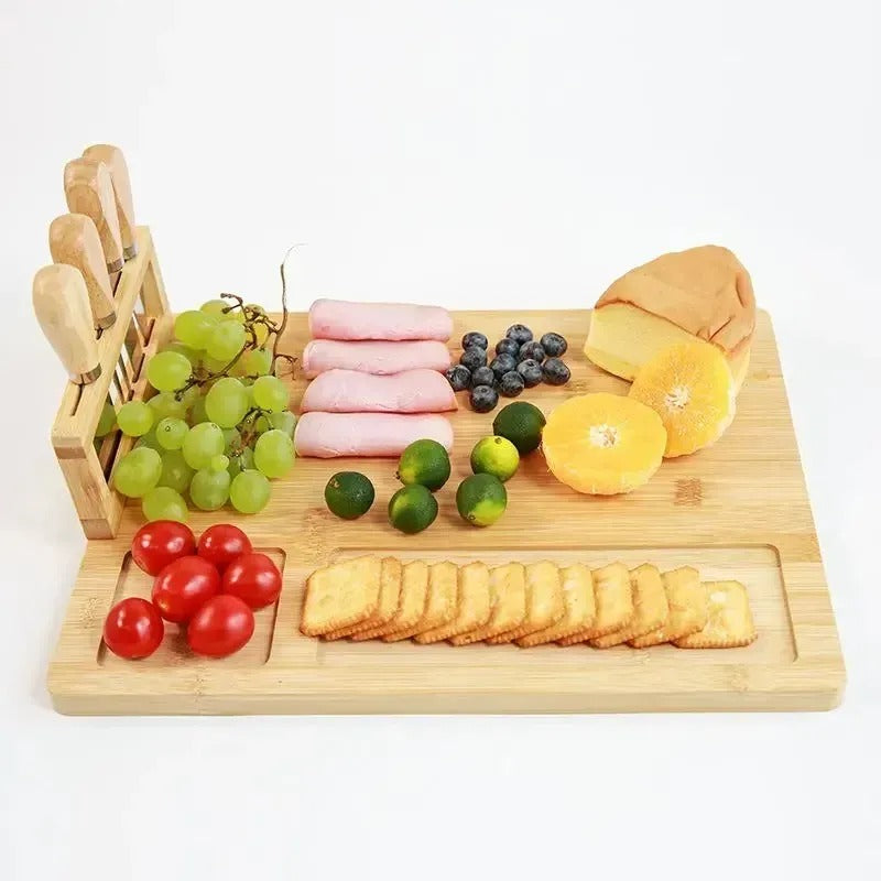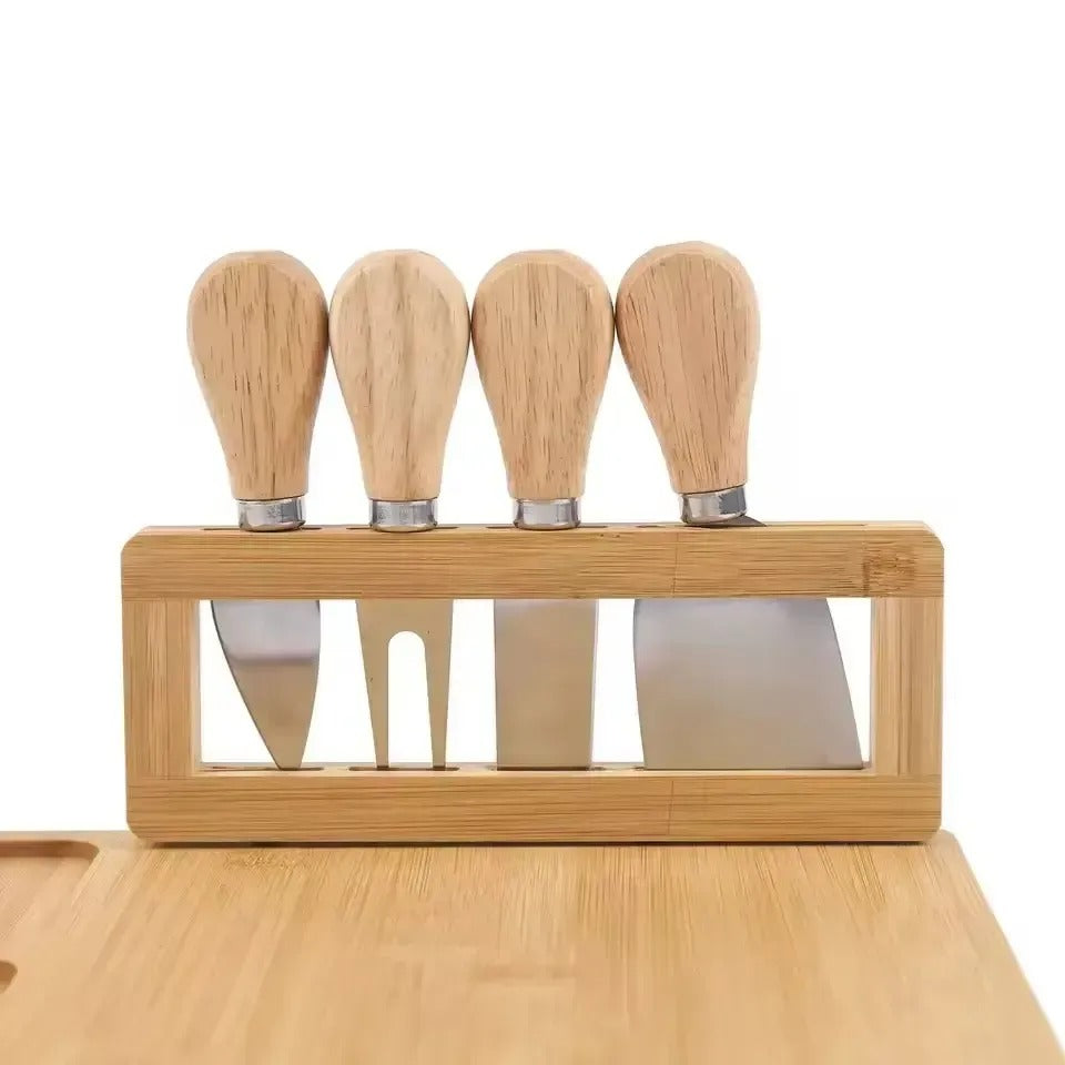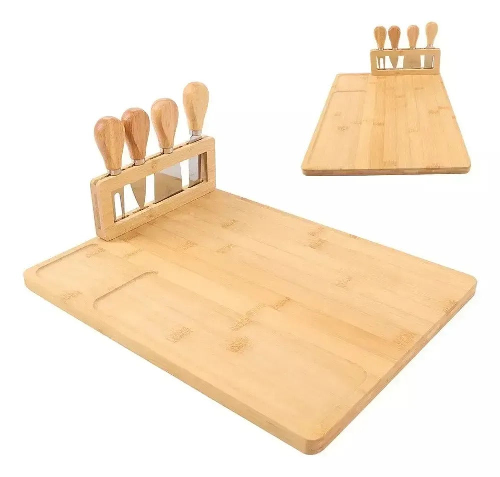 Bambusová deska na servírování sýrů a uzenin se sadou nožů – elegance na vašem stole