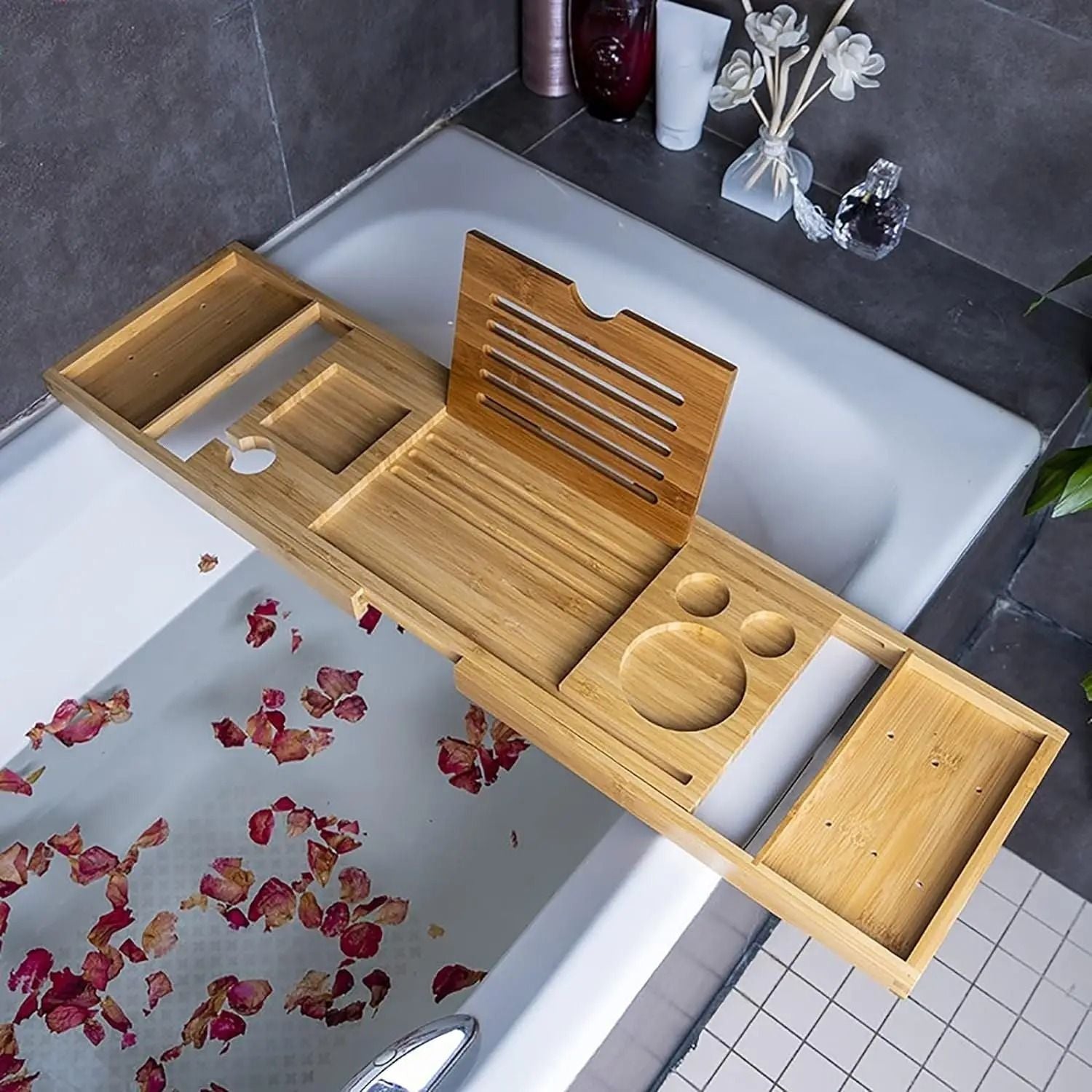 Stylová polička na vanu z bambusu – relaxace v eleganci!