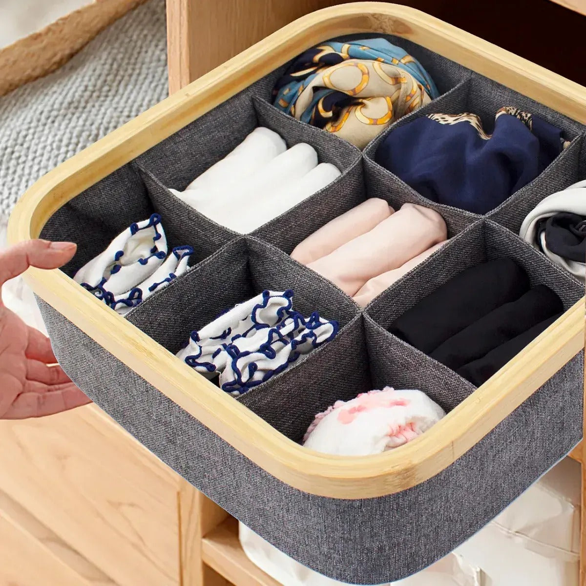 Organizér z bambusu na prádlo 9 přihrádek šedý (91650001)