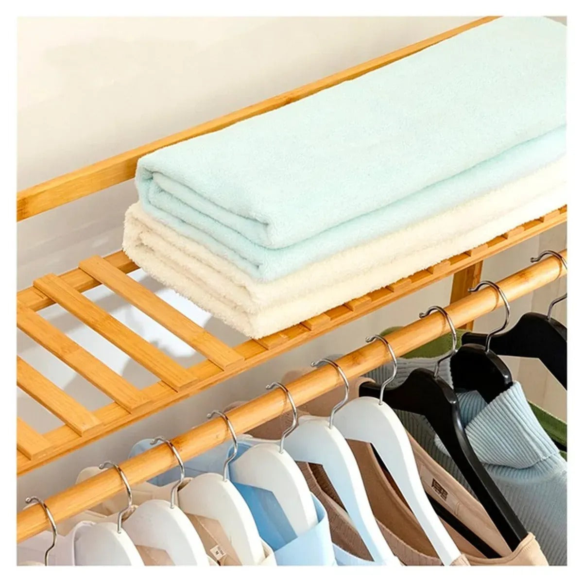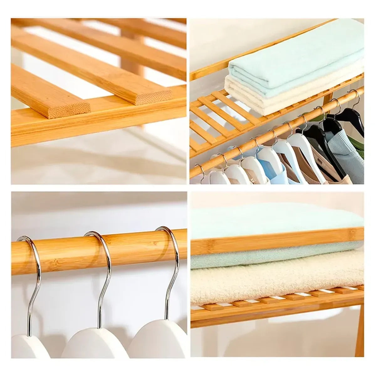Bambusový stojan na oblečení je praktické a estetické řešení pro organizaci prostoru ve vašem domě. Vyrobený z přírodního bambusu spojuje moderní design s funkčností a pomáhá efektivně uspořádat oblečení, boty a doplňky. Jeho lehká, ale zároveň pevná konstrukce se hodí do každého interiéru – od ložnice a šatny po předsíň nebo kancelář.