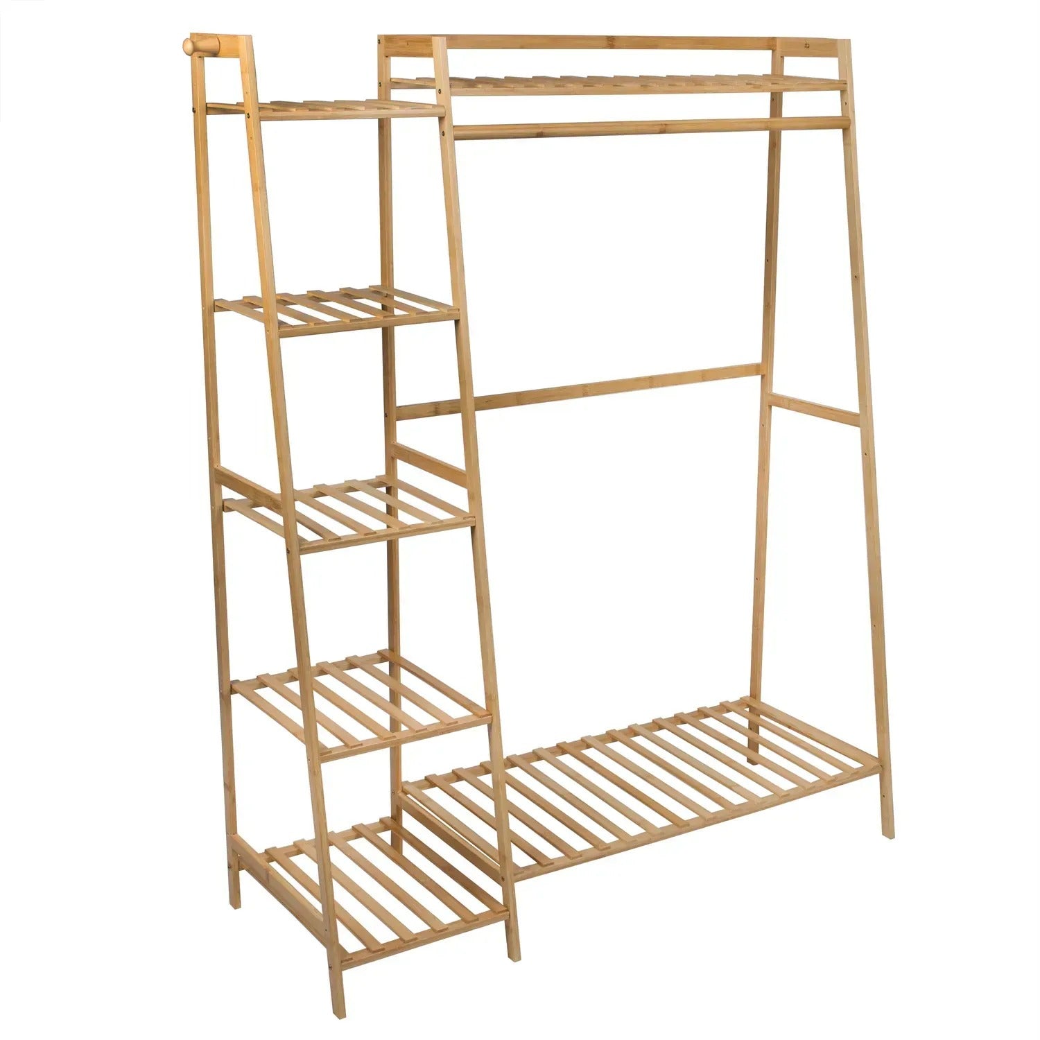 Bambusový věšák na oblečení s policemi (91680001)