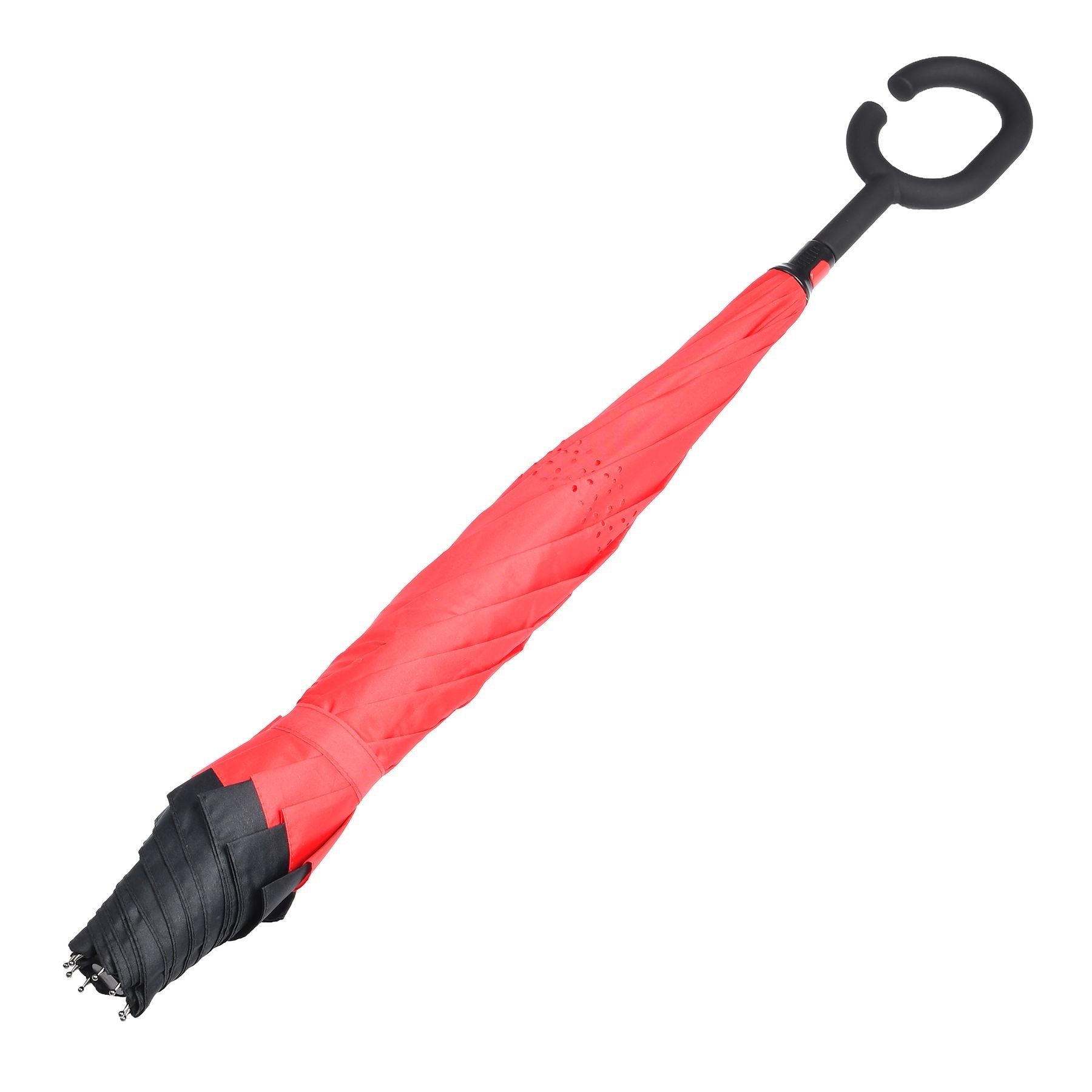 Díky speciálnímu designu lze náš deštník složit v opačném směru. To znamená, že bez ohledu na směr větru zůstane deštník stabilní. Už se nemusíte obávat, že by se paprsky ohnuly nebo poškodily produkt v důsledku silných poryvů větru.