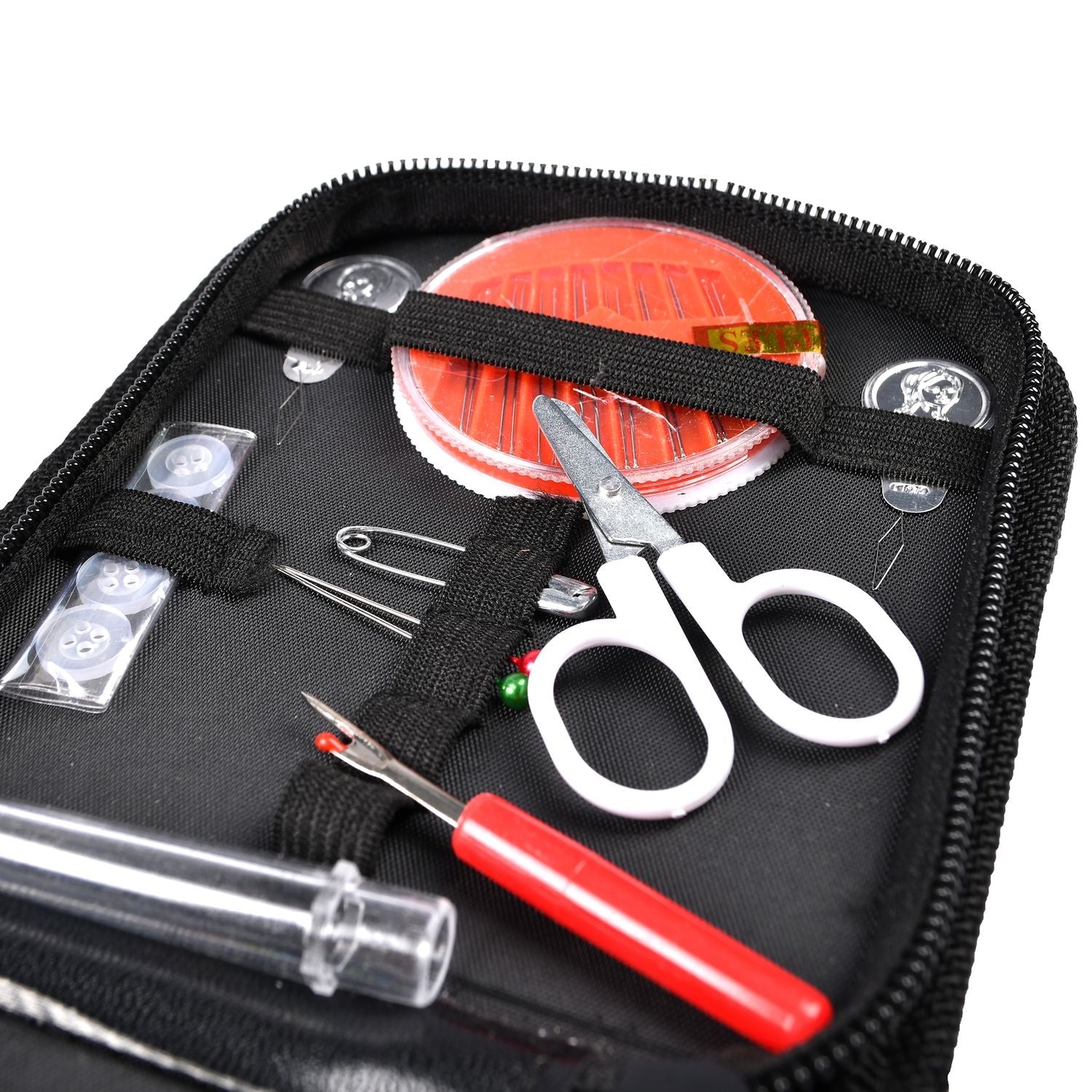 | Zahrnuto | Pouzdro – 1 ks; Ocelové nůžky – 1 ks; Stiletto – 1 ks; Centimetr (150 cm) – 1 ks; Vícebarevné nitě – 14 ks; Plastové pouzdro s jehlami (16 ks) - 1 ks; Knoflíky - 3 ks; Navlékače - 2 ks; Prujak - 1 ks; Kovový náprstek - 1 pc. |