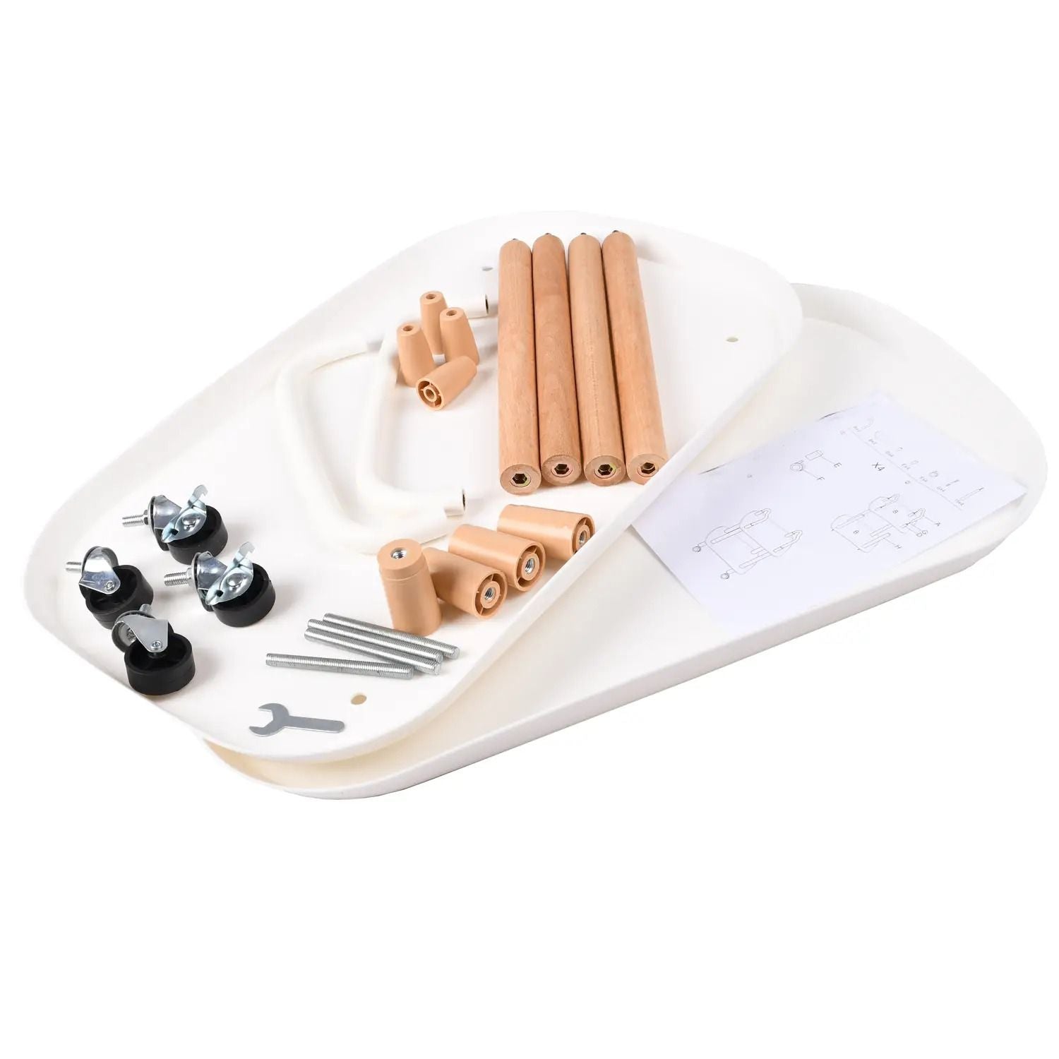 | Zahrnuto | Madla - 2 ks, police - 2 ks, objímky bez závitu - 4 ks, objímky se závitem - 4 ks, kolečka - 4 ks, nohy - 4 ks, čepy se závitem - 4 ks, klíč , pokyny |