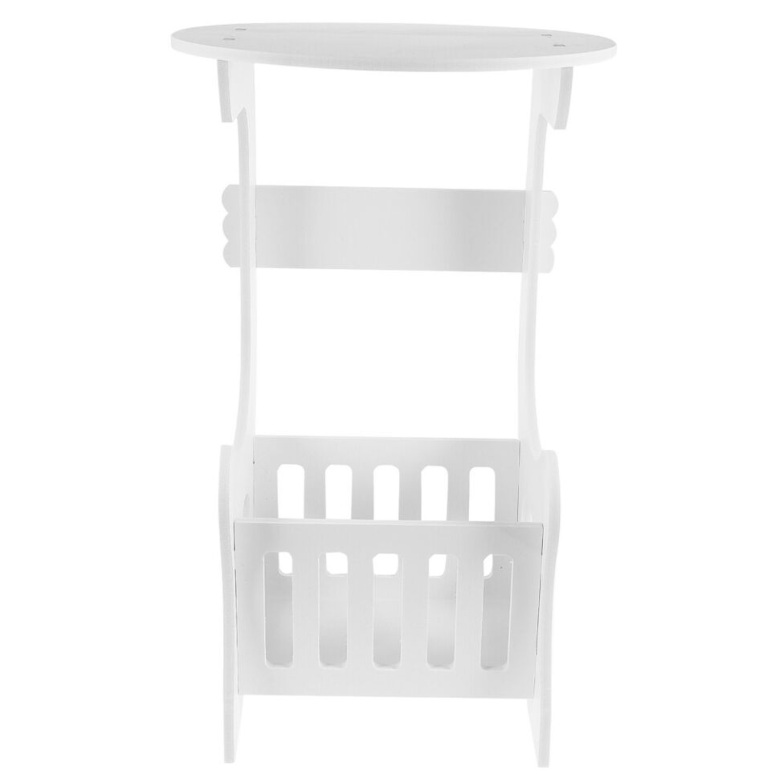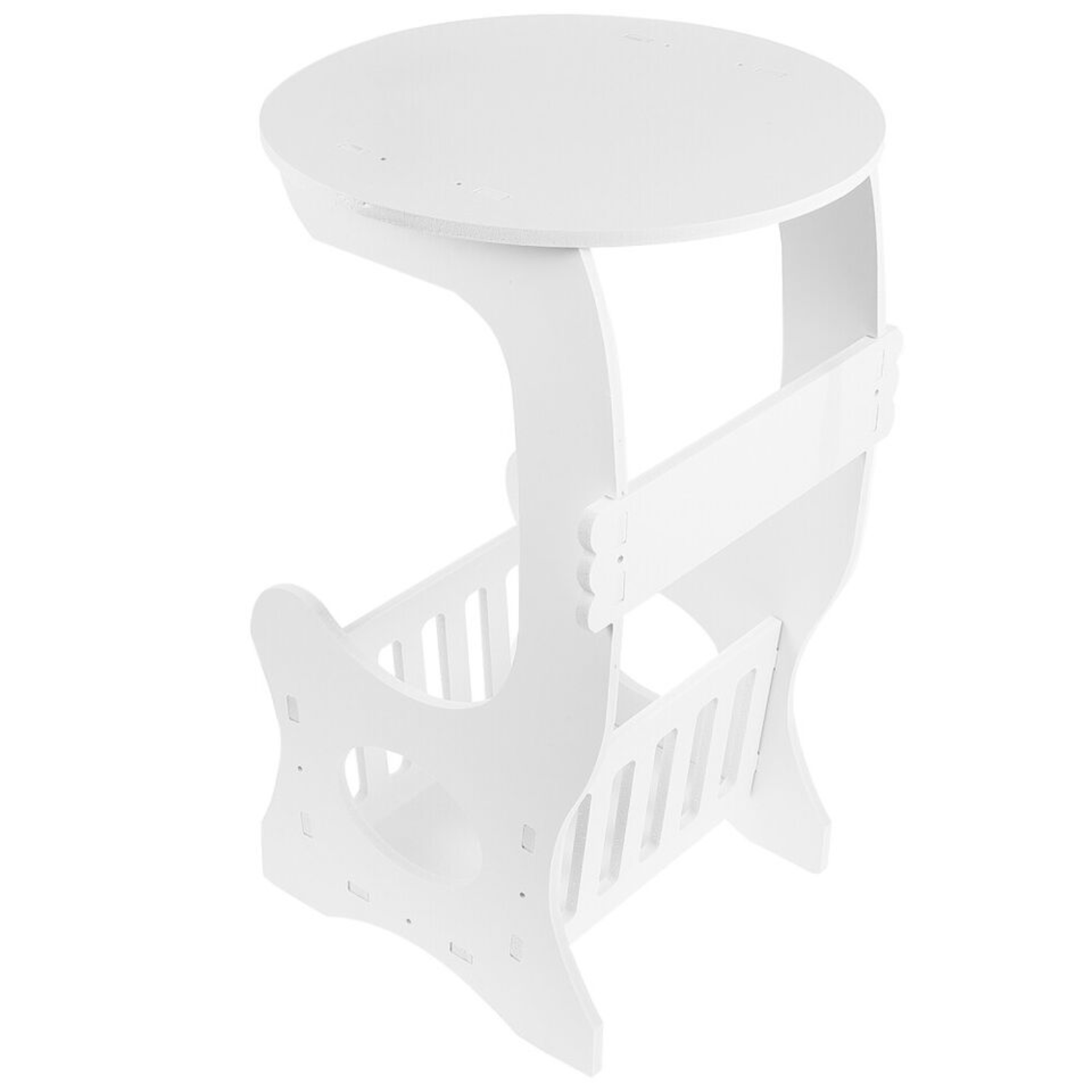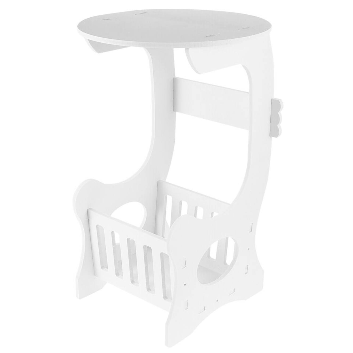 Kulatý stolek s policí na odkládání různých drobností, vyrobený z PVC, odolný, lehký a velmi skladný. Moderní a lakonický design stolku se hodí do každého interiéru