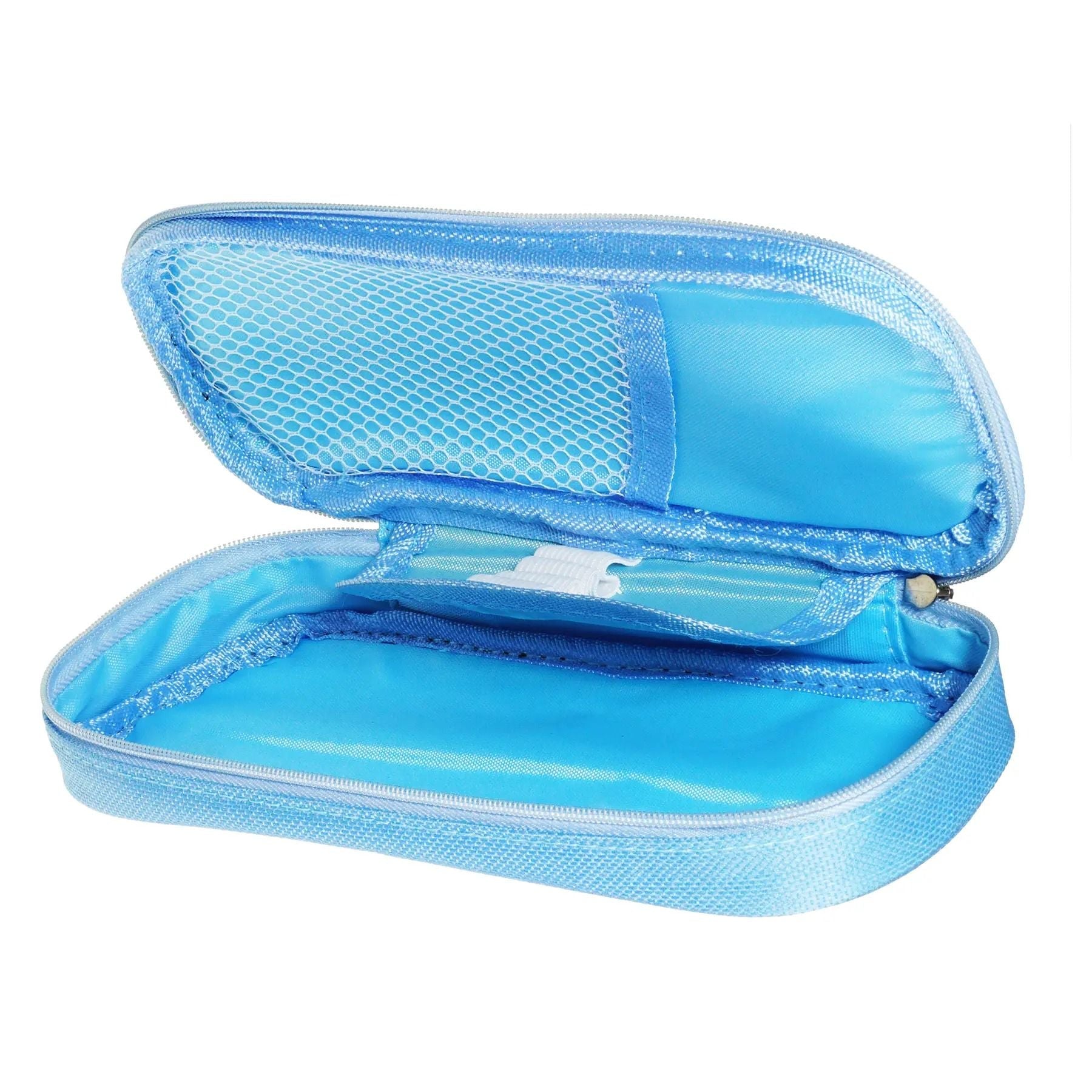 Tento světle modrý penál, vyrobený z odolného polyesteru s voděodolnými vlastnostmi, jistě upoutá pozornost každého studenta.