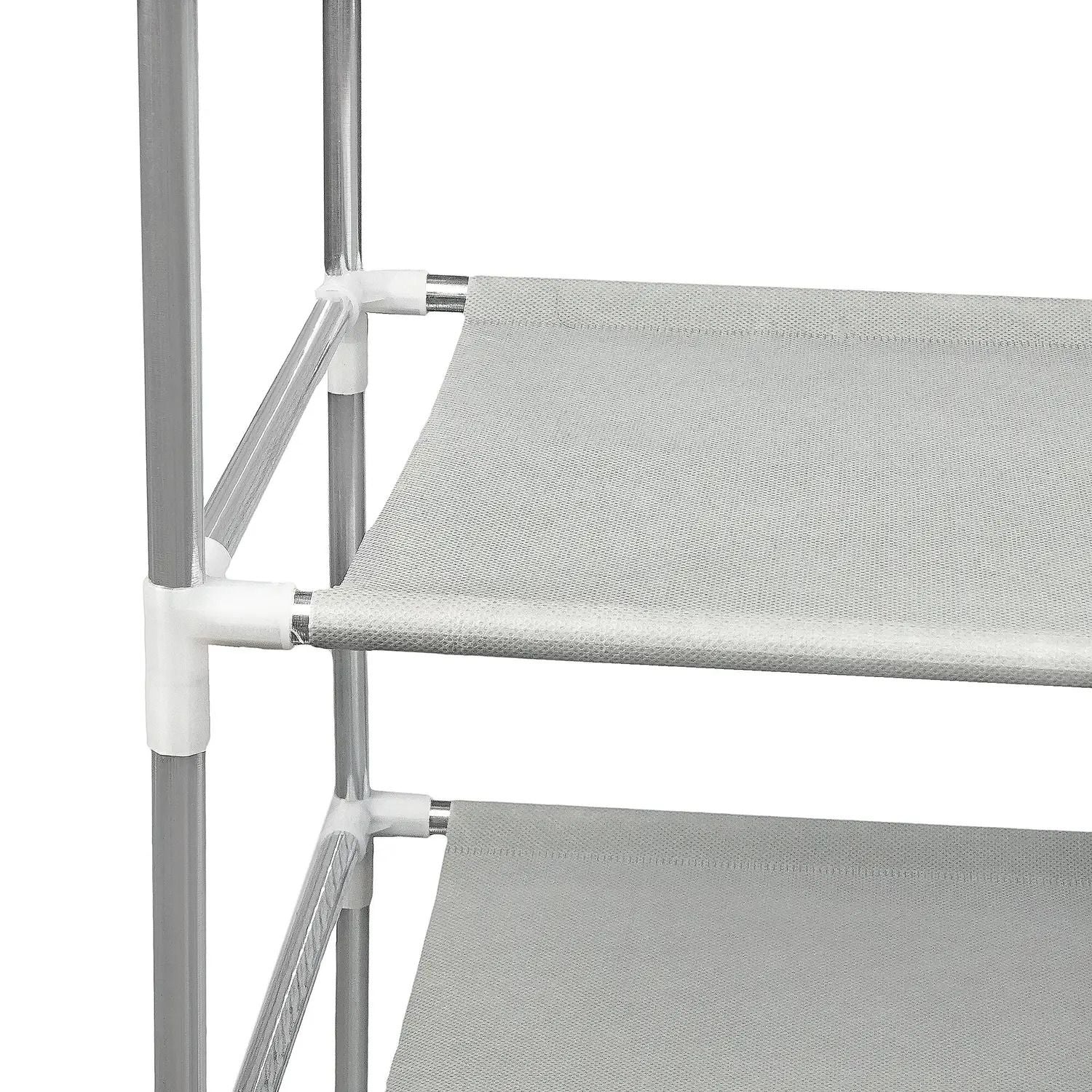 Struktura police se skládá z kovových trubek a 5 látkových polic. Montuji jako konstruktér. Nejsou potřeba žádné další nástroje a materiály. Montáž zvládnete sami během několika minut.