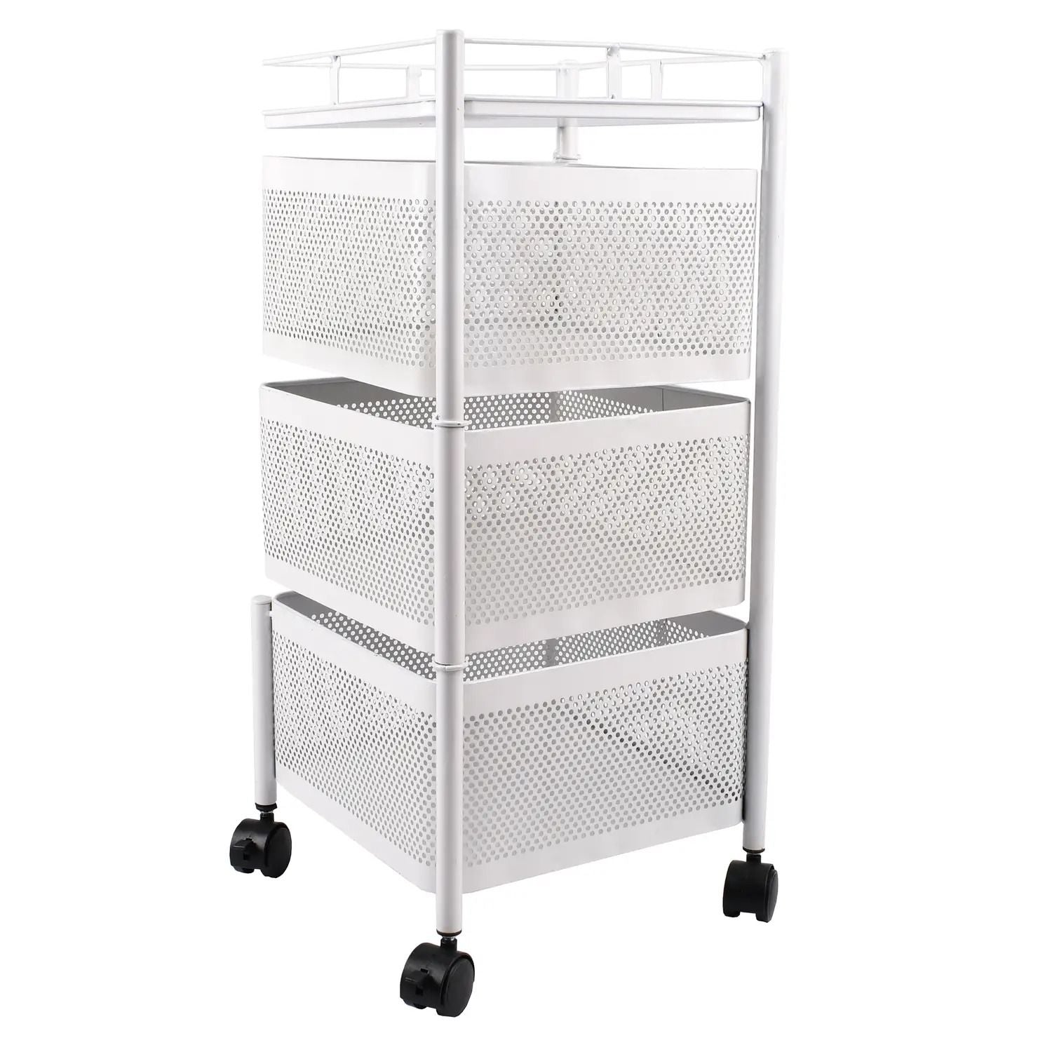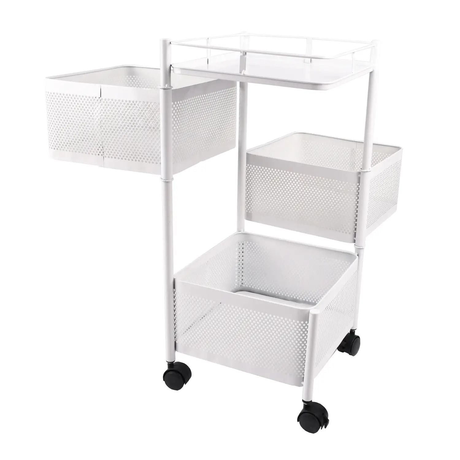 Mobilní regál na kolečkách s výsuvnou policí, kovový bílý (83620001)