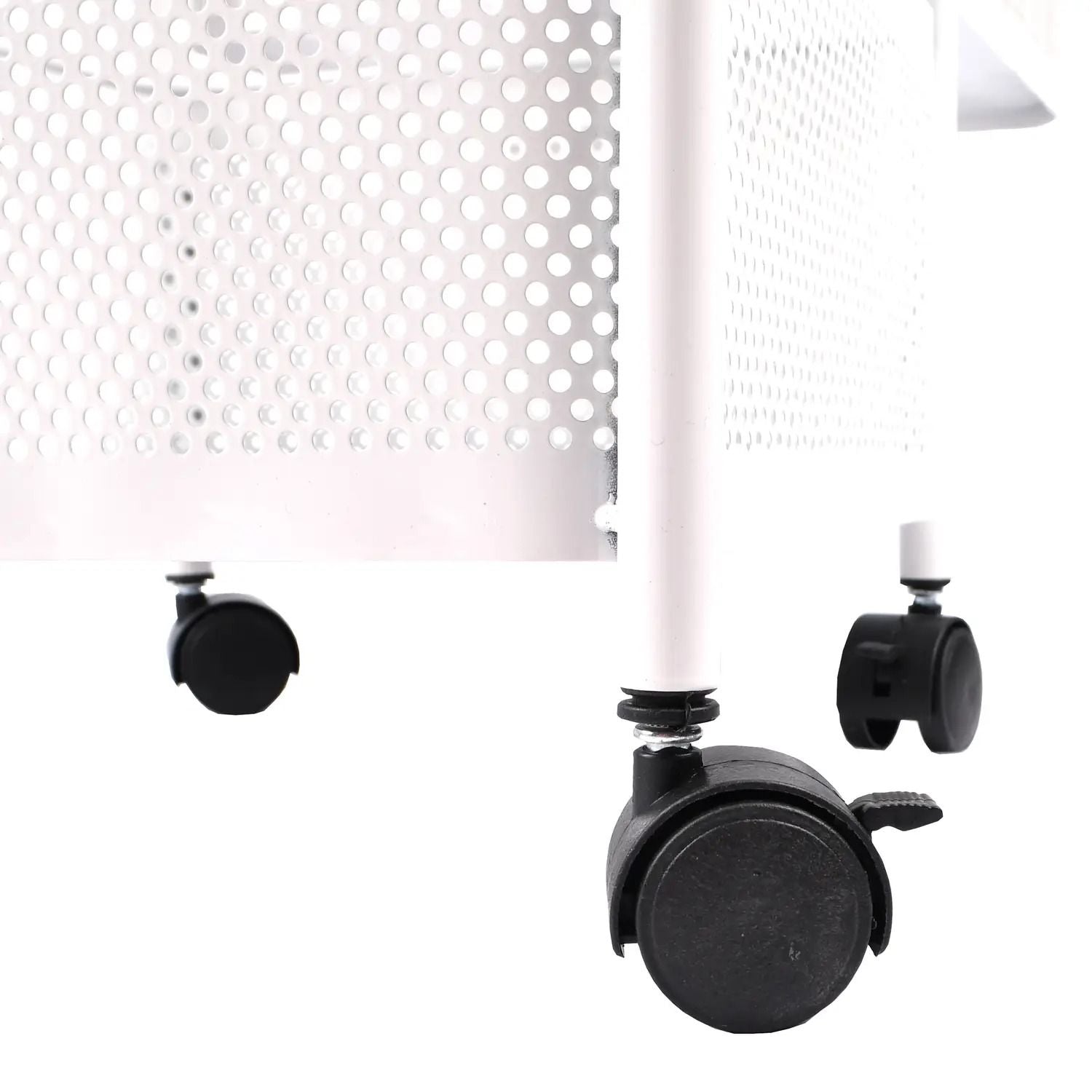 Polička je vybavena pohodlnými kolečky, která umožňují snadné přemisťování při každodenním úklidu. Funkce uzamčení kola zajišťuje stabilitu tím, že eliminuje náhodné pohyby.
