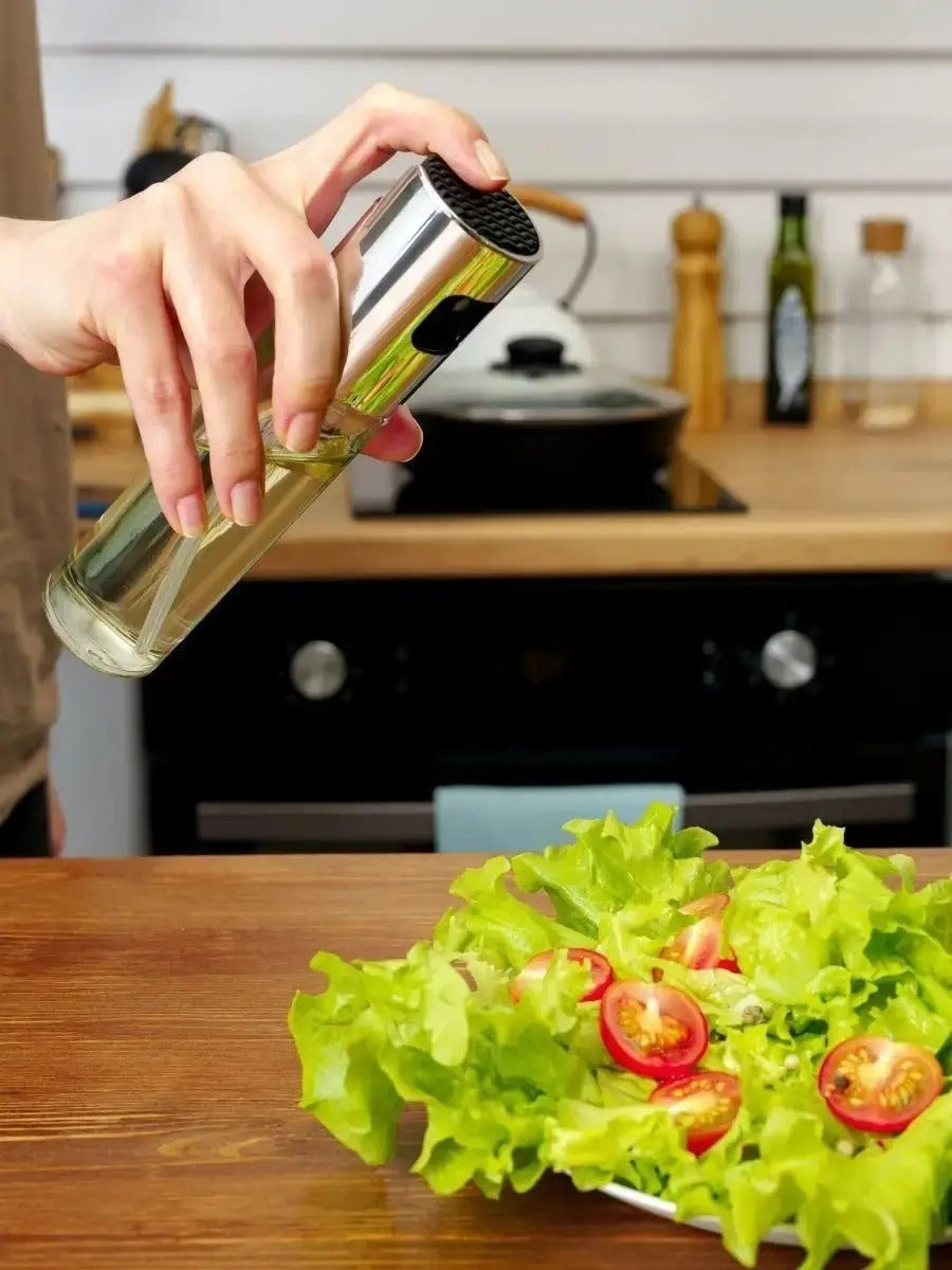- Přesné nanášení: Díky inovativnímu mechanismu rozprašovač rovnoměrně rozprostře olej, olivový olej nebo ocet, což vám umožní efektivně kontrolovat množství použitého produktu, ideální pro saláty, smažení nebo pečení.