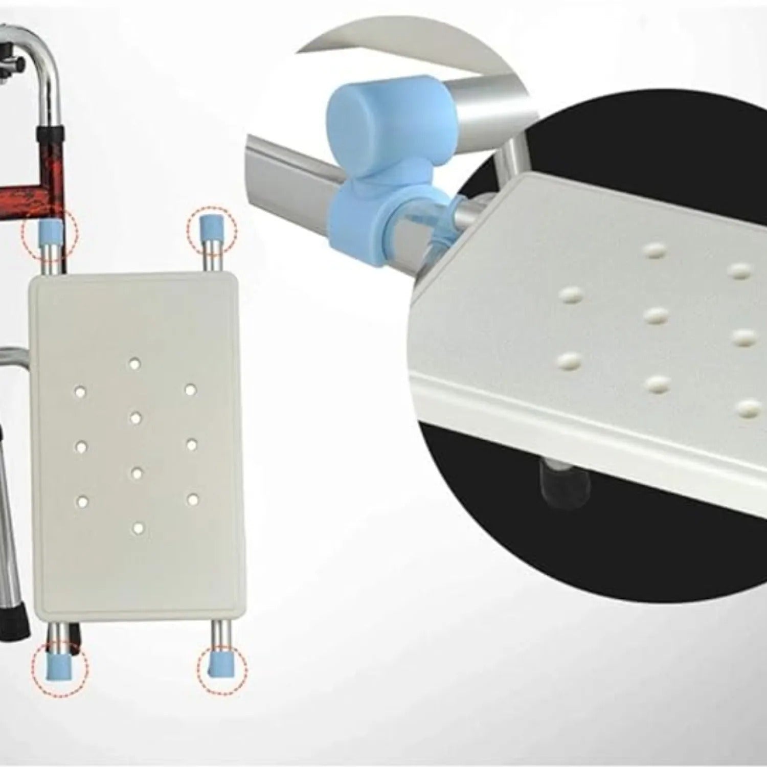 Chodítko nabízí dva způsoby použití – podporu při pohybu a pohodlné sedátko pro odpočinek. Zabudovaná voděodolná deska se skvěle hodí jako vana nebo sprchové křeslo, což dále zvyšuje její funkčnost. Snadno se sundává a připevňuje a jeho voděodolný povrch zajišťuje odolnost i ve vlhkých podmínkách.