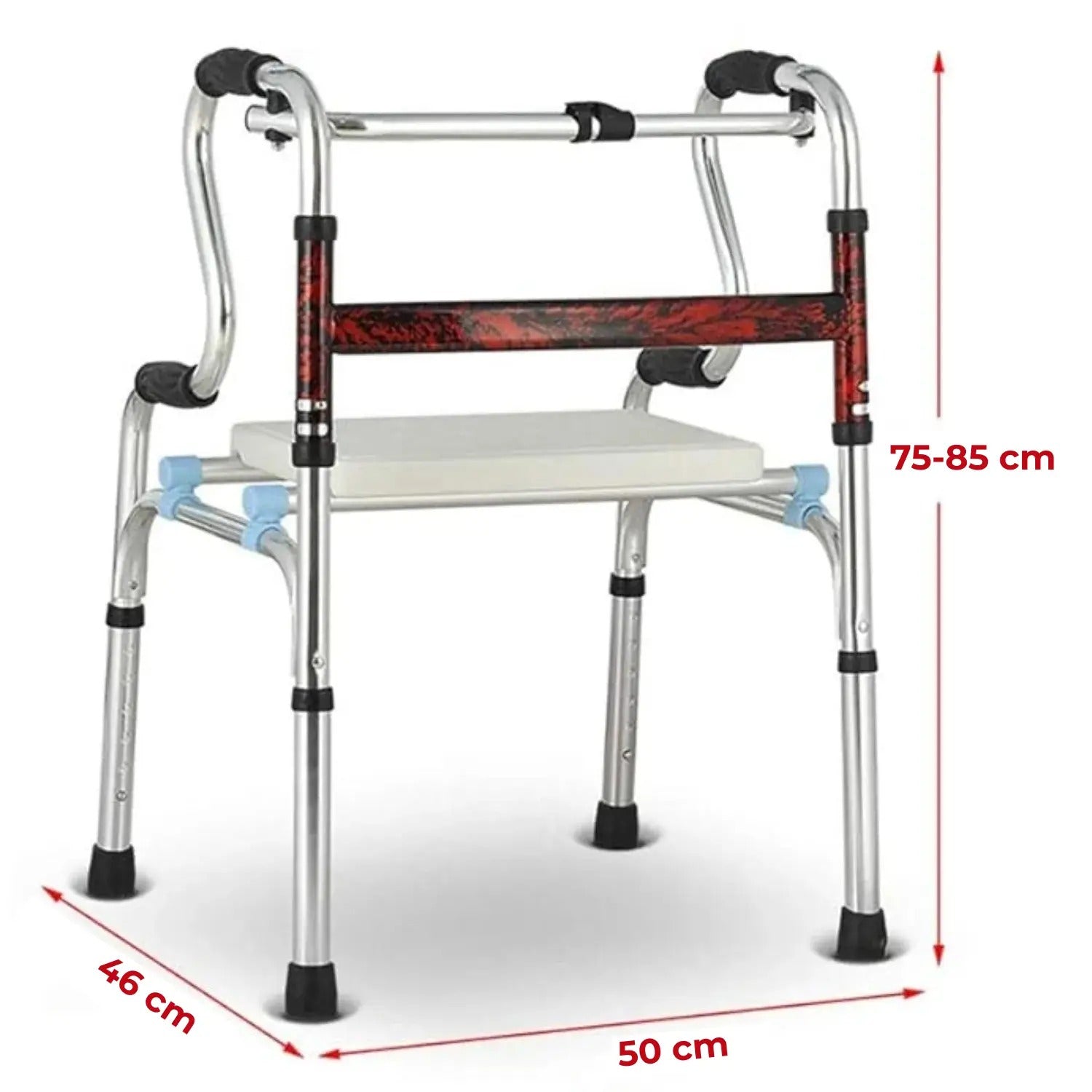 Chodítko má 6 úrovní nastavení výšky, takže jej lze přizpůsobit individuálním potřebám uživatele. Skládací design vám umožní rychle a snadno složit chodítko během několika sekund – stačí stisknout tlačítko a chodítko přesunout nebo vzít na výlet. Kompaktní rozměry ve složeném stavu umožňují bezproblémové skladování a přepravu.