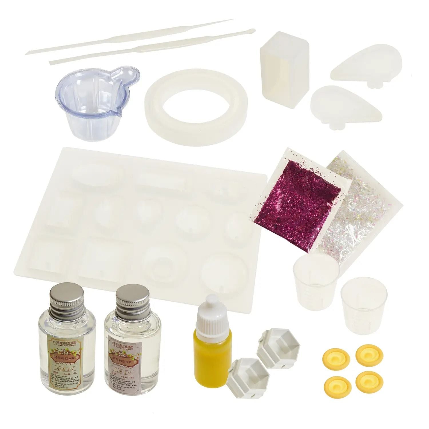 Nyní si můžete snadno vytvořit vlastní prsteny, náramky, náušnice a náhrdelníky. Silikonové formy jsou průhledné, flexibilní a velmi snadno se používají. Pomohou vám odstranit zmrazené produkty bez dalšího úsilí. Součástí sady jsou také speciální tyčinky, které vám pomohou šetrně odstranit přebytečnou pryskyřici z formy a konečky prstů zajistí bezpečnost při používání sady.