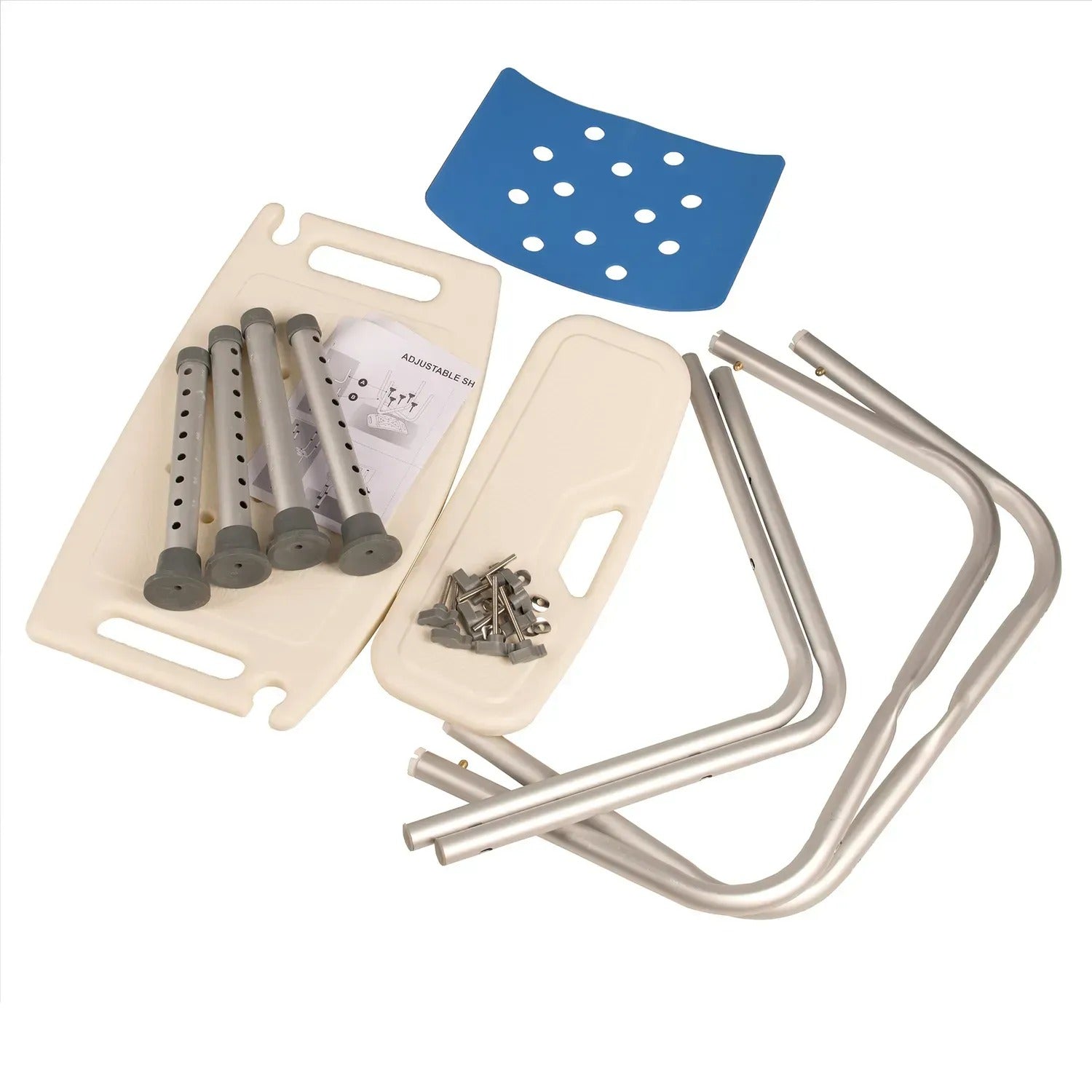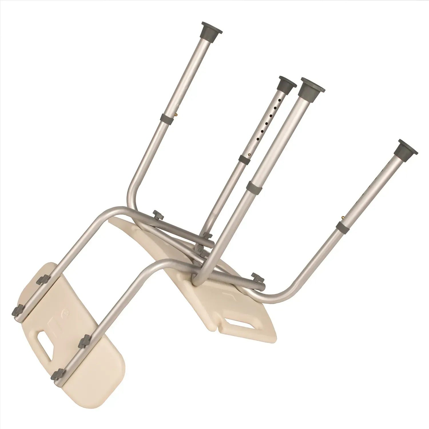 Možnost nastavení výšky umožňuje přizpůsobení individuálním potřebám uživatele. Hliníkové nohy s gumovými zakončeními zajišťují stabilitu ve vaně nebo sprše, minimalizují riziko uklouznutí a přispívají k celkové bezpečnosti.