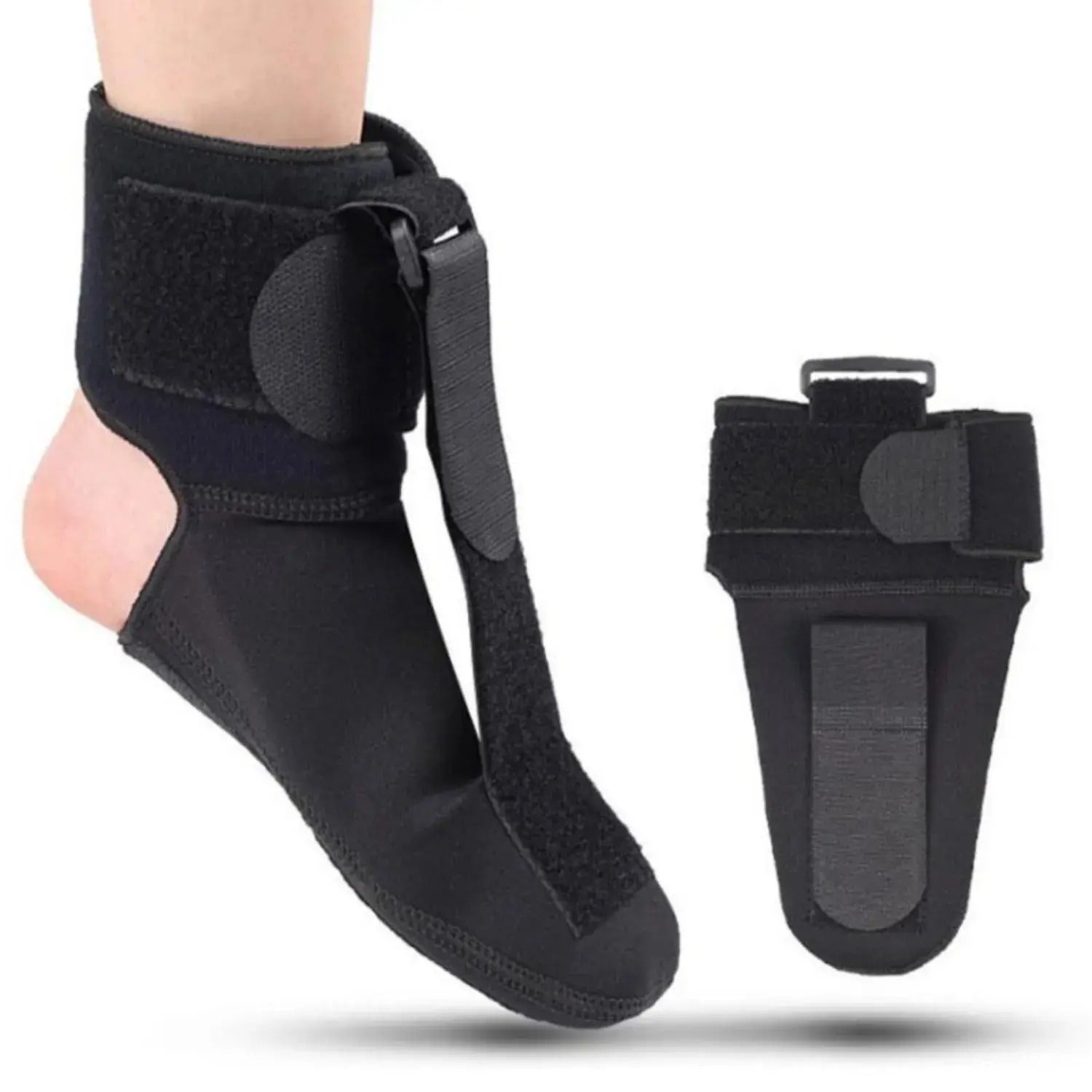 | Další funkce | Nastavitelný pásek: Ovládá napětí v oblasti prstů Elastický pásek: Připevňuje ponožku ke kotníku, aby se zabránilo sklouznutí Gumová podrážka: Poskytuje protiskluzový povrch Funkce : Zvedá prsty na nohou, protahuje plantární fascii, snižuje mikropoškození a bolest |