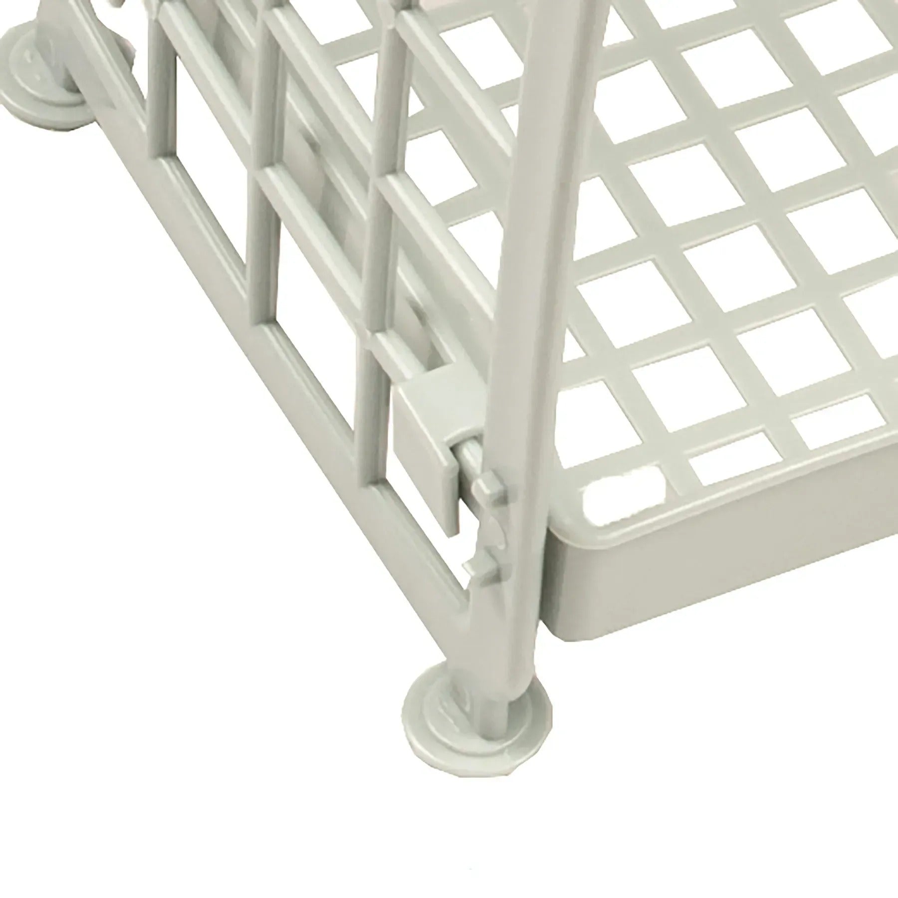 Polička je vyrobena z odolného plastu, odolného proti mechanickému poškození. Konstrukce je pevná a praktická. Mřížkový povrch zajišťuje cirkulaci vzduchu a zabraňuje hromadění prachu na policích.