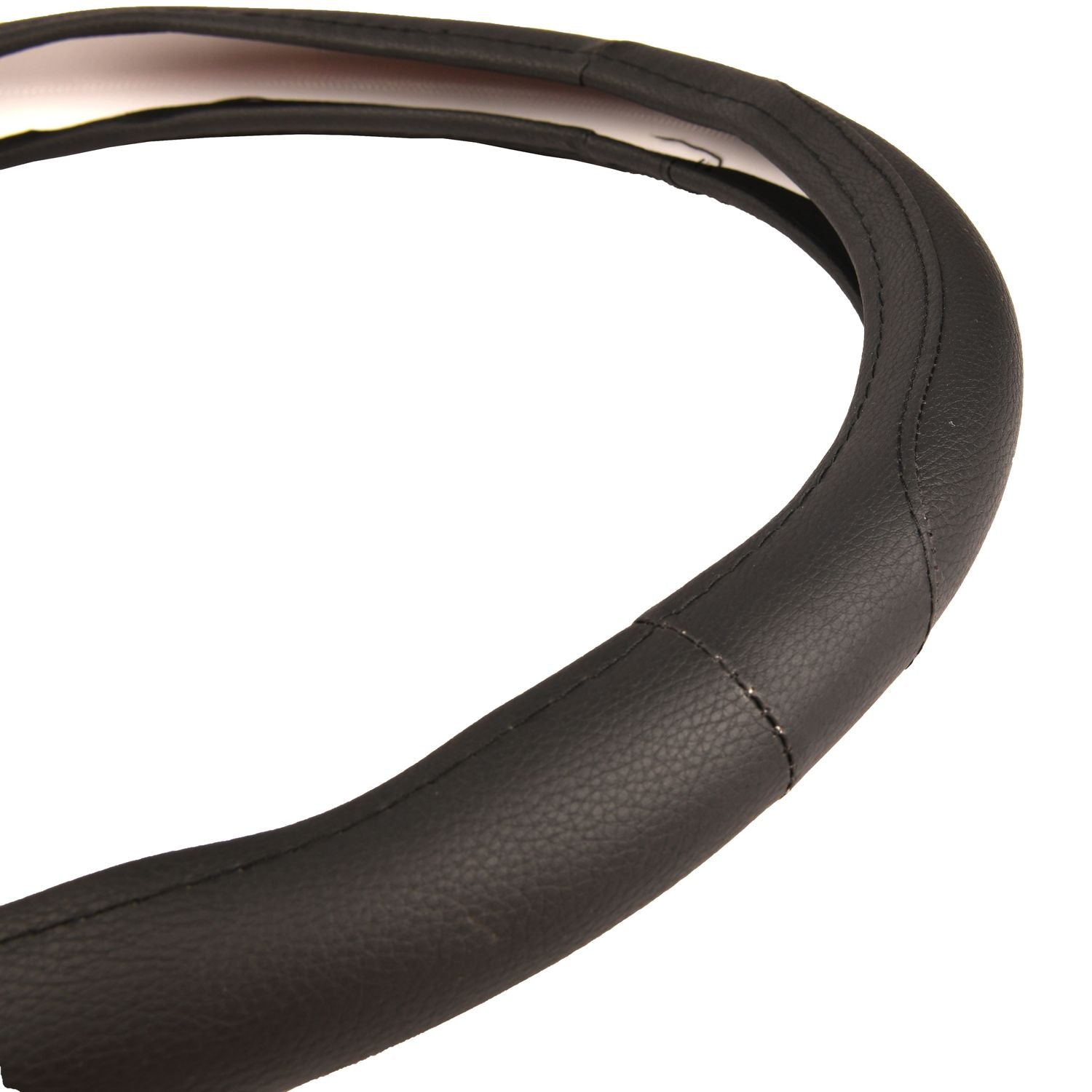 - Vysoká kvalita zpracování: Potah je pečlivě vyroben z kvalitního, pružného, odolného materiálu - černé ekokůže. Perfektně sedí na volantu;