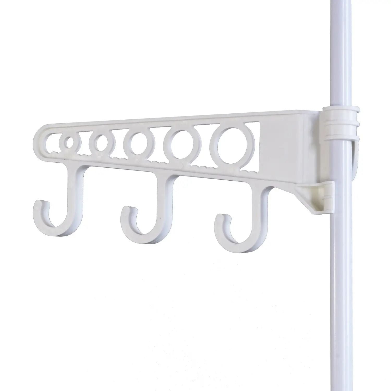 Věšák je vyroben z odolného kovu, který mu dodává pevnou konstrukci. Vydrží zatížení až 15 kg, což umožňuje umístit na něj více oblečení. Horní kolejnice slouží jako věšáky a sada obsahuje 4 plastové věšáky s háčky, které lze připevnit na obě strany konstrukce a poskytují tak další prostor pro zavěšení oblečení.