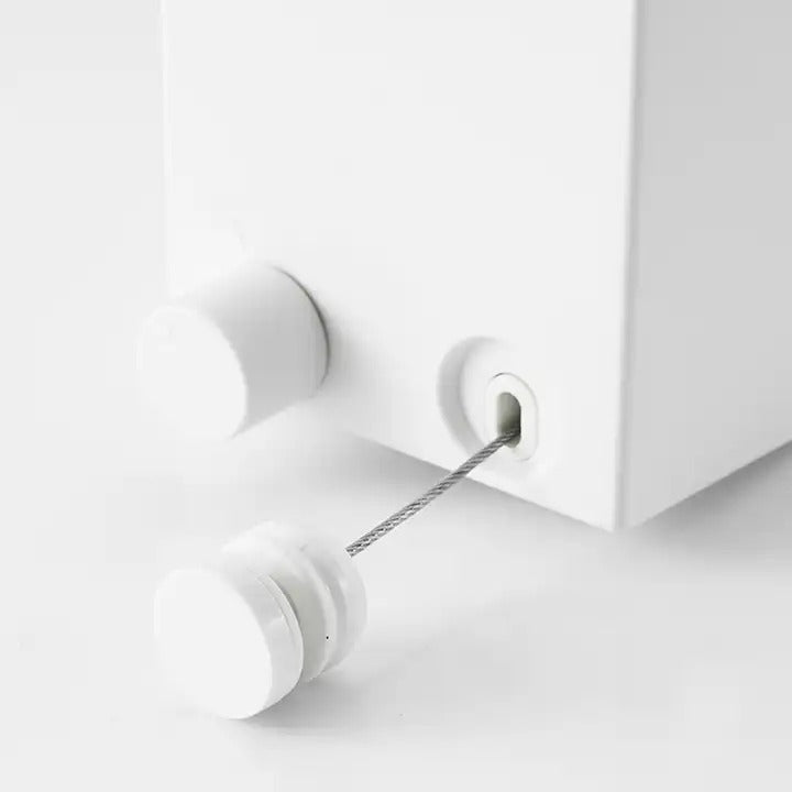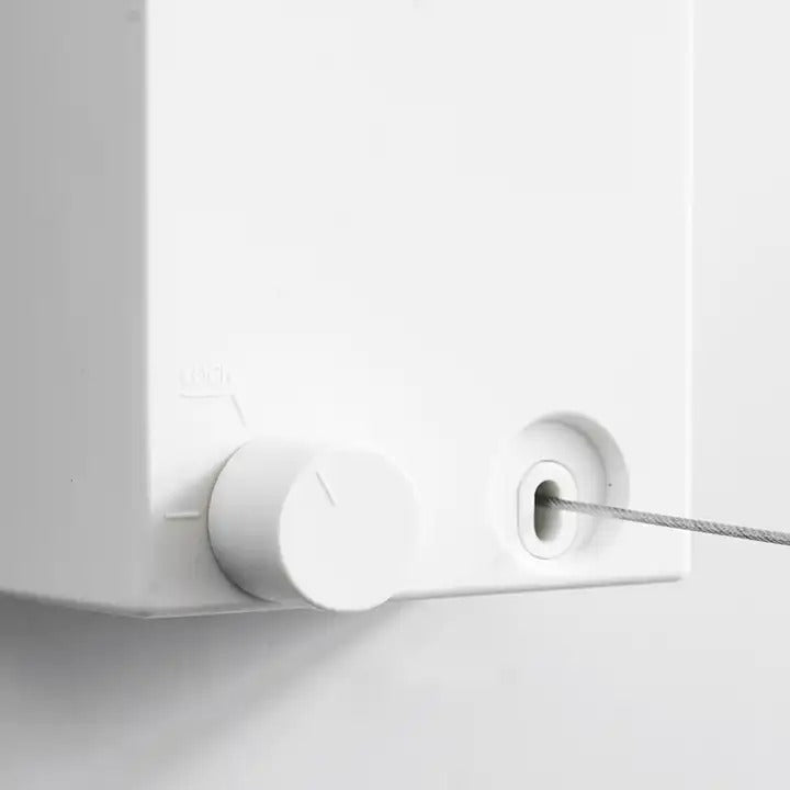 Náš věšák byl pečlivě navržen s plastovým pláštěm obsahujícím 4,2 metru dlouhou ocelovou šňůru. Díky možnosti nastavení délky lana dokonale vyhovuje vašim potřebám – stačí jej vytáhnout a uzamknout ve zvolené délce.