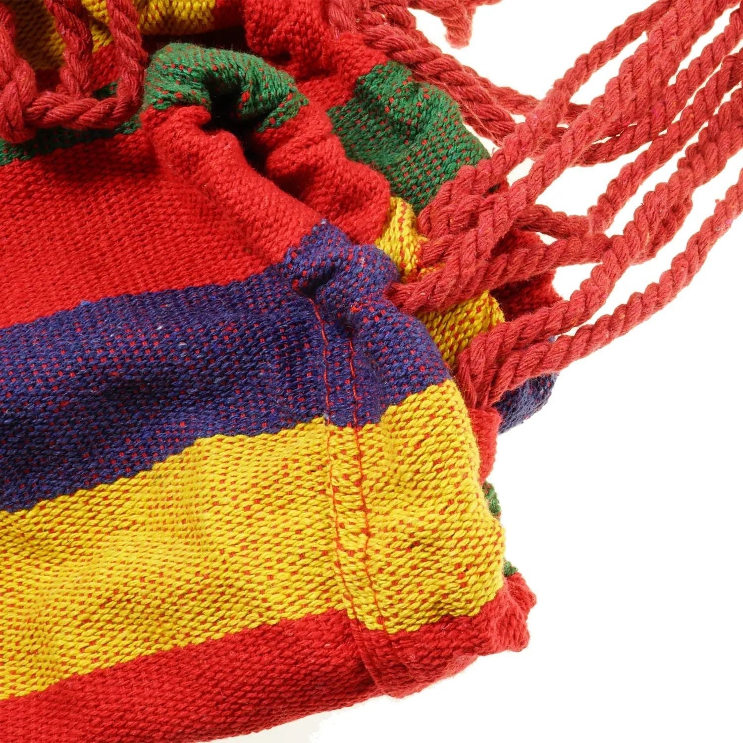 Mexická houpací síť se velmi snadno sestavuje. Po stranách houpací sítě jsou dvě elastická poutka z bavlněných šňůrek. Houpací síť tedy můžete zavěsit na větve mezi dva stromy, na kovové pušky nebo zatáhnout za další lana a přivázat podpěry.