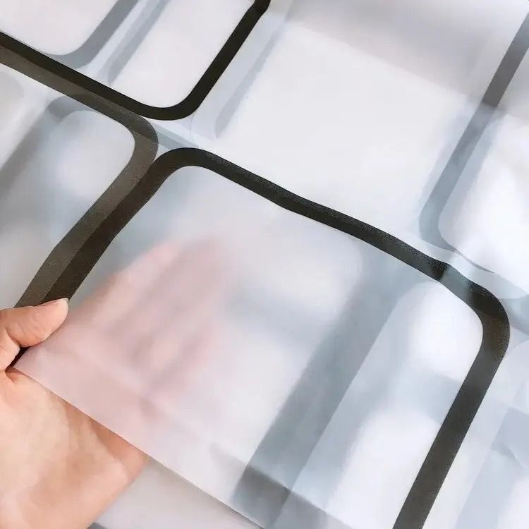 Netoxický materiál bez zápachu se vyznačuje vysokou odolností proti opotřebení a hydrofobními vlastnostmi, udržuje záclonu suchou a snadno se udržuje v čistotě.