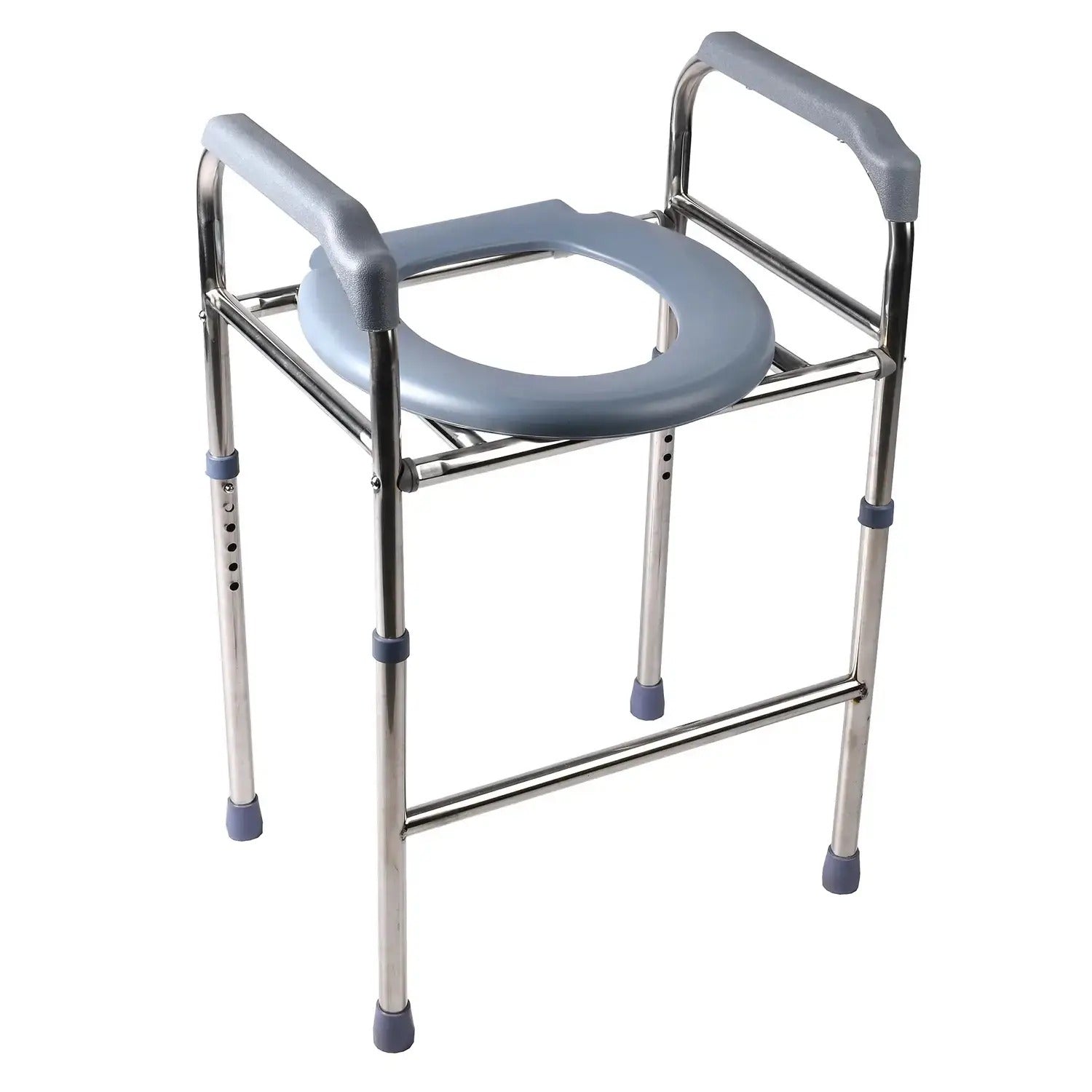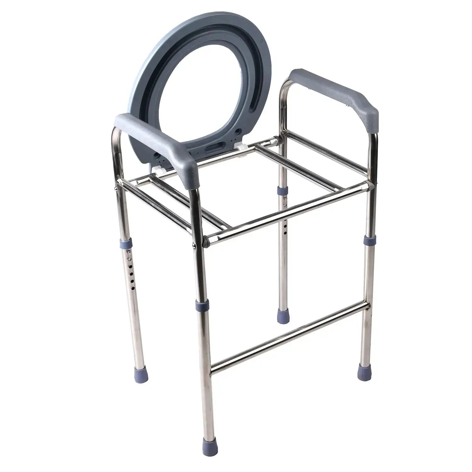 Naše toaletní sedátko je vybaveno masivní nerezovou rukojetí, která je známá svou odolností a vysokou úrovní bezpečnosti. Kola a madla z protiskluzového materiálu zaručují stabilitu, eliminují riziko pádu a poskytují spolehlivé místo pro oporu.